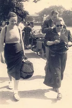 On the right side of this photo is my grandmother, Ruzena Kohnova, nee Müllerova, and walking beside her is Marie Kohnova, nee Ulrichova, her daughter-in-law. The photograph is from 1938, and was taken in Prague.