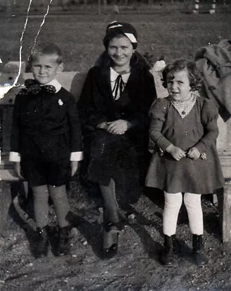 This is a picture of me (third from left) with my brother Rudolf and my nanny. We went on some trip in Topolcany. I think I'm around four years old here, so the picture must have been taken around 1933-34.