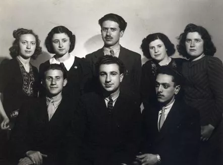 First from left in the second row is Ida Alkalai, then Estrea, I, Vitka and my sister Lizka. Aron Alkalai is first from left in the first row. Then comes Herzel, who left for Israel, and Haim Pilosof.