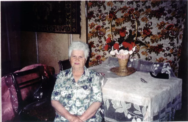 I, Sally Uzvalova, photographed at my home in Chernovtsy in 2000, to send the photo to a friend of mine living in the US.