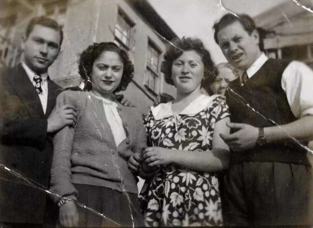 This photo was taken on the day I got engaged to Bulisa Baruh in Tekirdag, the city she was born and grew up in. On the left, you can see my fiancee’s uncle, Aron Ojalvo, beside him is his wife, Rasel Ojalvo, beside her is my fiancee Bulisa Baruh and I am standing beside her on the right. The head you can see in the back belongs to my mother Mazalto Coyas. The Baruh family lived in the Jewish neighborhood in Tekirdag. Bulisa is wearing a dress she had made herself.