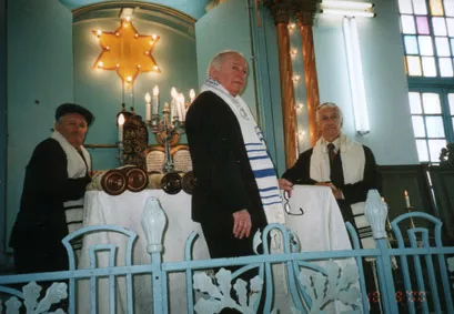 I am the one to the left. The one in the middle is Mr. Bernstein and the one to the right is Mr. Luthmar. The photo was taken at the Synagogue in Braila on 9 October 2000. Mr. Luthmar was then teaching us Hebrew.