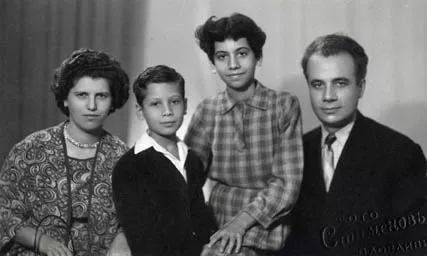 Here is the family of my older brother Samuil (on the right). Next to him is his daughter Lily, his son Zhoudi and his wife, Amada. There is a stamp on the back of the photo: November 1958, Artistic Photo Atelier Stamenov – Plovdiv, 6, ‘Antim I’ street. There is no other inscription on the back of the photo.