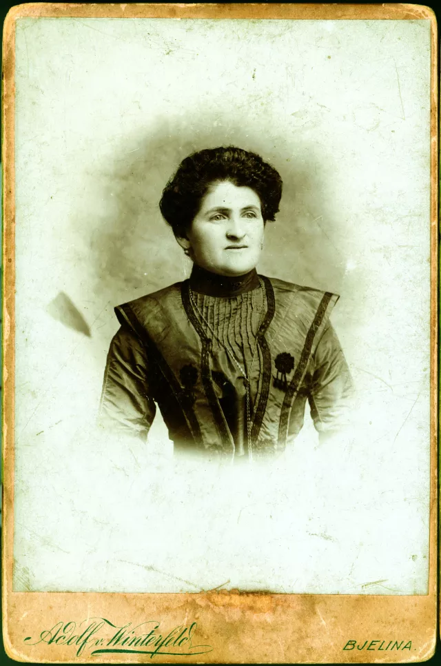 This is a photograph of my paternal grandmother, Sara Eskenazi. I did not know her; she died three months before I was born. She was married to Abraham Eskenazi, a lawyer in Bjeljina. He was Sephardi. He observed the traditions. He was not Orthodox, but like the rest of the Jews from his generation, he observed the holidays, went to temple and socialized with others. It was not a ghetto, but all the Jews, especially from smaller places, socialized in the communities or at the holiday parties for Purim, Hanukah. At that time, there were about 150 Jews in Bjeljina.