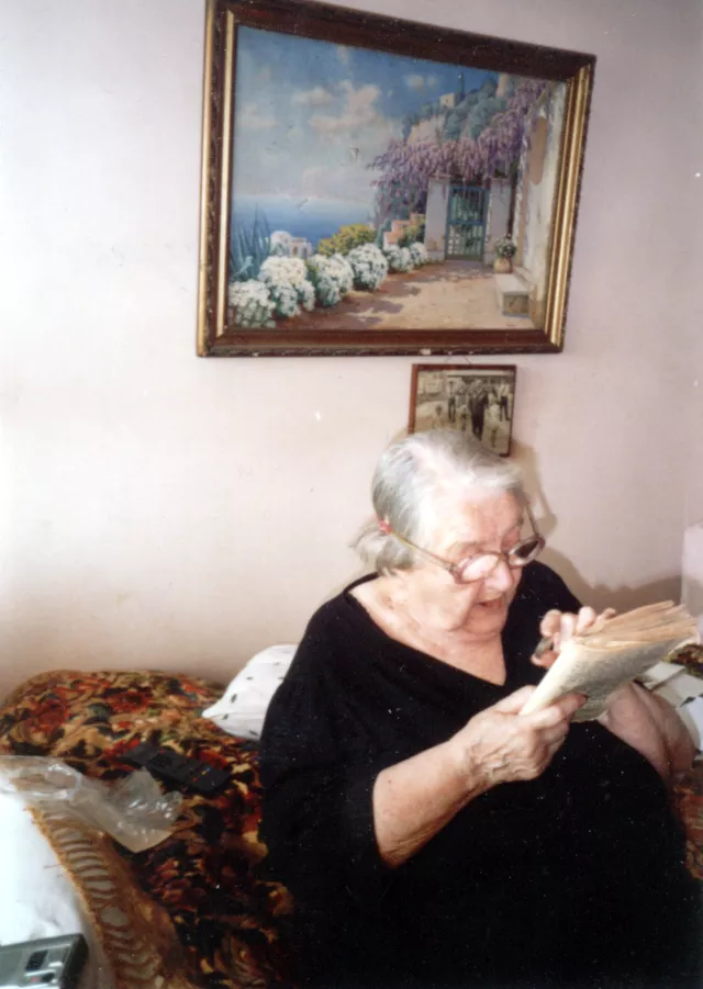 My husband died in 1986. I remained by myself in a way as after husband's death I did not have friends any more. I communicated with husband's friends only. I am not needy. I get a large pension 905 lita for my husband [editor's note: about 350 dollars]. I felt myself alone morally and I came back to my roots as if I got the call from childhood, I started going to the synagogue, mark Jewish holydays, pray. It was so easy and natural to dip into the world of values which have been dear since childhood. There is a Jewish community in Kaunas. It was open in early 1990s. I am an active member of it and I get some help from them. 1990s I regularly went to the synagogue. The last time I was there was on Pesach four years ago. My daughter Lina also goes there, she orders prayers for our kin, buys matzah on Pesach. My children come to me on holidays, paying the tribute to my Jewish roots. I am about to start praying daily like I was taught by my father. I even recalled Hebrew. Probably I had never forgotten about my roots as this is the best knowledge in my time. I read the Bible every day and recollect my childhood, our town, my parent and the Jewish world, I grew up. Today I turned 89. My children, grandchildren and great grandchildren have been visiting me since early morning. They love me, and it makes me happy.