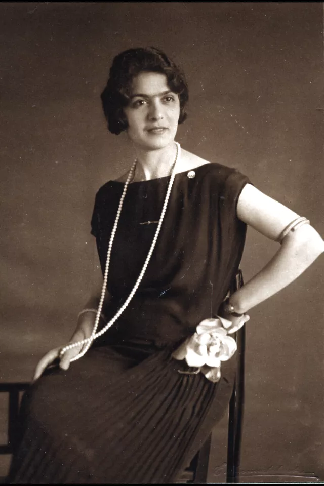 Here you can see my aunt, my mother’s sister, Sarah Saporta. She is wearing a beautiful necklace made of pearls. She was really beautiful but she was a bit frail.