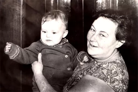 I, Sarra Shylman with my granddaughter Evgenia Shyfris. Mikhail and Valia and Evgenia came to visit us. Amateur photo. Kiev, 1977.