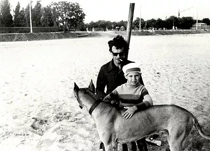 My son, Sasha Serikov, with his son Igor during a walk at the Dnepr River. The photo was taken in Kiev in 1971.