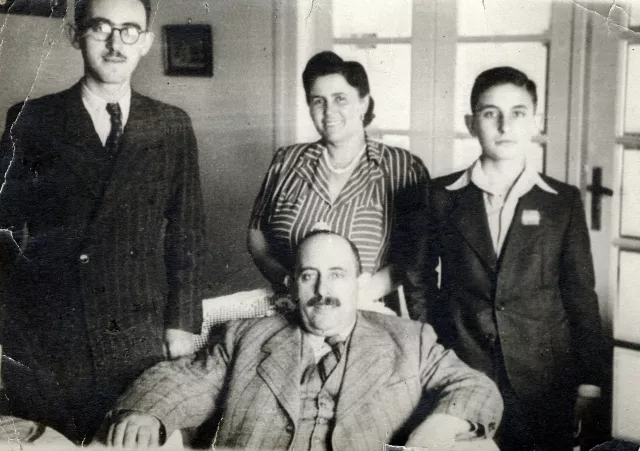 This is my family in the living room of our house in Mileticeva street. It was taken at the beginning of World War II; it is the last photo that I have together with my family. My father is sitting, my younger brother is standing at the right side of my mother, and I’m at the left side of my mother.