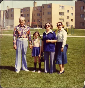 In this photograph, the second one from the right is my aunt, Lotti Schwartz (nee Davidsohn), my father's sister, with her husband, Sandu Schwartz, and their daughter, Ada - the one on the right -, and their niece, Blanche. They are living in Toronto, Canada.