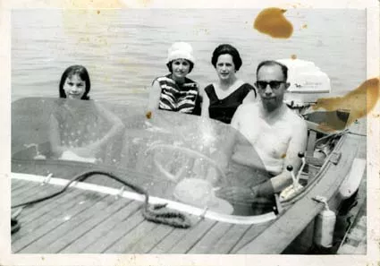 This photo was taken on our boat at Burgazada, the second of the Prince’s Islands on the Sea of Marmara. When we started going to Burgazada for the summer, we also acquired a boat and spend nice days on the sea with our friends. Here you can see some of them, Ester Tani at the back on the right, Lili Hananel and her daughter. The photo must have been taken by my wife, Suzan. We spent many a nice day like this at sea in the summer. I liked this motor-boat very much. It had 50 horsepower and was the only one of its kind on the island.