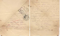 This is the first letter from my wife Tatiana Tilipman that I received at the front. June, 1942. Tatiana wrote this letter after she received information about my whereabouts and my field mail code from Department of the Soviet army communications. Tatiana mentions in her letters that she is sending two letters in case one gets lost. She cannot believe I am alive and she asks me to confirm this fact to her at the following address: Turkestan town of Yuzhno-Kazakhstan region, Kazakhstan.