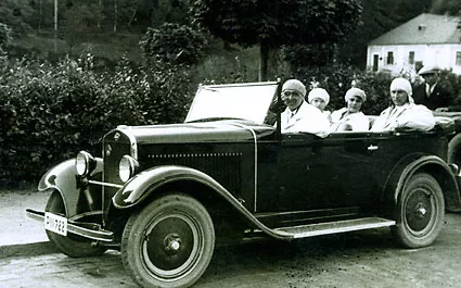 This is a picture of the house of my foster-father, Doctor Sergej Panov (first from left) in his car. There’s also my mother, Olga Neuwirthova, nee Bondyova, me and his Czech friend.