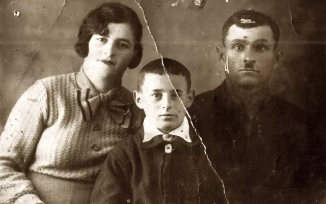 From left to right: my mother Shifra Kravets, my stepbrother Lev Kravets, mother's elder brother Efim Schneider.