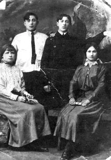 My parents: Shlomo-Girsh Rondin (third on the left) and Rachel Levenchuk (4th on the left) and their friends. Photo made in Gomel in 1918, few months before their wedding.