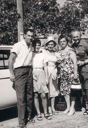 This is my brother Shymon Sofar (first from left) and his wife Pnina Sofar (in center) with our French relatives. The second on the right is our cousin sister Rachel. I remember no more names. This photo was taken in Rishon Le Ziyon in 1963.