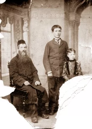 The old man in this picture is Simon Fainaru, my great-grandfather, my maternal grandmother Seindla Schatz’s father. The photo was taken in the 1880s I believe, in Iasi. The little girl near him is Ela Finkelstein, his niece, and the boy is Ela’s brother, but I don’t remember his name.