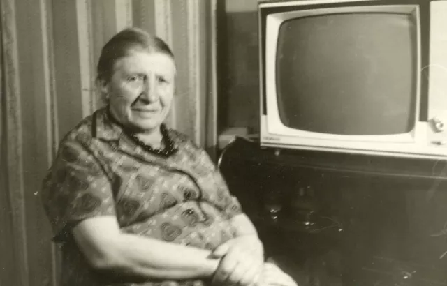 This is an amateur photo, taken by our relative in Leningrad in 1970. My mom is 77 years old here.