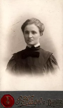 This is my mother Sofia Tsentsiper in lyceum uniform. The photo was made in Dwinsk in 1907 on the graduation day. Photo saloon J. Klatkin, Dwinsk.