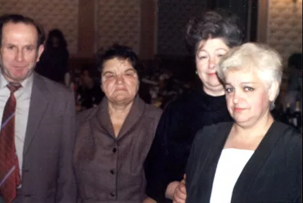 This photograph was taken in a restaurant in Mogilyov-Podolskiy. This was the only time my sister Etia came from Israel to visit us. She invited us to the restaurant. From left to right: my husband Semyon Leiderman, me, my sister Etia Pekelis and my daughter Maya Kotliar. This photo was taken in 1990.