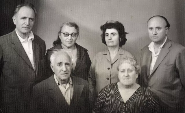 Fani and Hazmonay Yulzari, my husband's elder brother are sitting from below. They lived in Pleven. On the utmost left is Rafael Yulzari, his other brother, who was imprisoned for political reasons before 9th September 1944. This means he was in the underground opposition to the fascist regime in Bulgaria during the Law for the Protection of the Nation. Next to him is his wife, Buka Yulzari. They, on their turn, lived in Varna. She was a great communist. All people in the picture, except me, have already passed away.