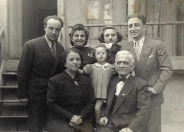 From below upwards, from right to left, one can see my father Sinto Beniesh, my daughter Buena Yulzari, my mother Rashel Beniesh, my husband Mois Yulzari, me, my sister Matilda Beniesh, and my brother Samuel Beniesh, who was not yet married then.