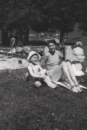This picture was taken in August of 1939, and shows me, Ladislav Urban and my mother, Alzbeta Urban, as we’re sunbathing at Luka in Tatranska Lomnica. We used to go on vacation with our parents regularly. Every year we'd go to the High Tatras, to Tatranska Lomnica. We'd go there both in the summer as well as during the winter. Most of the time we'd stay at the Grand Hotel. The last time we were there was in 1941, I think. I've also got photos from those times. I remember that the trains were so high that we children weren't able to get on. The trip lasted quite long, for us. In the Tatras we'd go sledding, and in the summer we'd walk around and play. Chasing squirrels and so on. Our parents would also take us to restaurants. We used to go there together with friends. Mainly our father, who used to play soccer in Piestany. He'd begun back when he was a student in Vienna. He even played defense for some team there.