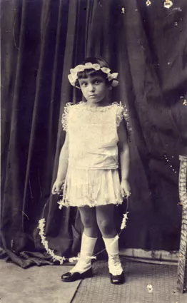This is me, Sura Milstein, in the 1920's at the Kindergarten for Children in Dorohoi, a state-run kindergarten - there was no other kind, in fact. The occasion was a sort of a performance, I was dancing and singing.