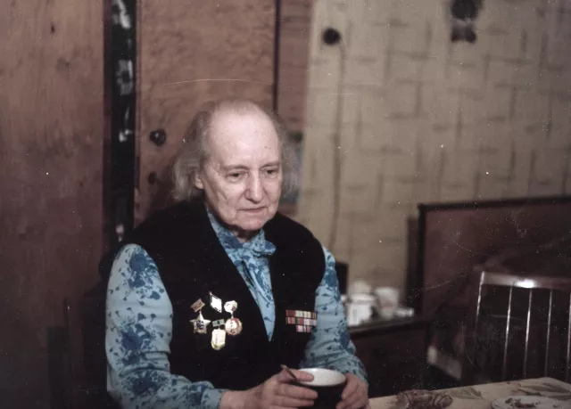 She is a long-liver, she was born in 1914. I am wearing festive clothes because I came to celebrate the 60th anniversary of school #169, where I worked as a teacher of Russian and literature. I was not married, but it was not a sacrifice to my sick relatives.