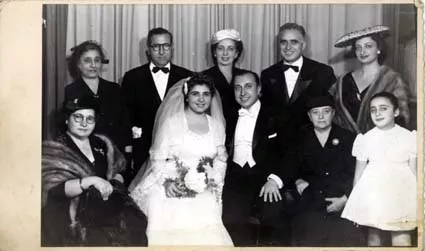 This photo was taken on the day of my wedding to Suzi Schilton (nee Bitek Behar) in 1957. We got married at the Italian Synagogue. In the front row, from left to right, you can see my wife Suzi’s mother, Rebeka Bitek Behar, then beside her my wife Suzi and me, the woman sitting beside me is my mother Viktorya Schilton and the little girl sitting beside her is my niece, Doli Samuel. In the back row, standing you can see from left to right, my aunt Fortune Danon, beside her, my wife’s father, Menahem Bitek Behar, beside him my cousin Viktorya Danon, on her right, my brother-in-law, Aleks Samuel, and on his right, his wife and my sister, Suzi Samuel (nee Schilton). The photo was taken at a photo studio in Beyoglu after the wedding. The wedding was really very nice. There was quite a crowd at the Italian synagogue and the atmosphere was great. We had our party that night at the Lido Restaurant/night club in Ortakoy. The Lido was a very famous place at the time and it was ideal for these kinds of celebrations. We had dinner there and it was really a very nice evening all in all.