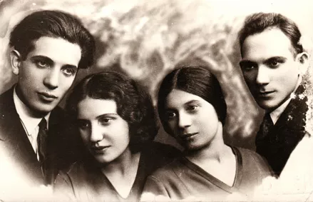 From left: My brother Ksil, his friend Bela Krysztal, my sister Rajzla, and her husband, Izrael Fruchtman.