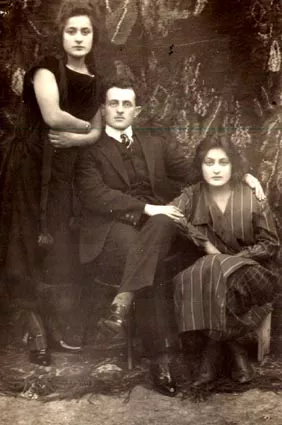 My mother Tabl Rubel is standing on the left, my father Shapsha Rubel is standing in the center, and Mother’s sister Feiga Kleiman is sitting on the right. The picture was taken shortly before my parents’ wedding in Vad-Rashkov in 1924.