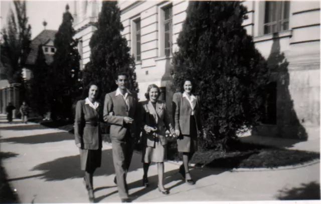 In spring 1943, in Kaposvar I took a walk in the park with my sister, brother and a friend of us. From left to right you can see the following persons: Dora Struhl, Jeno Struhl, Jutka and I. My brother spent his holidays in Kaposvar; he came there from Hajmasker, where he was doing work service.