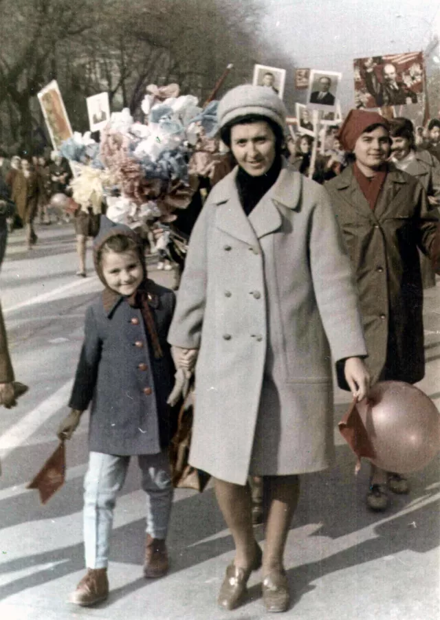 This is me (first on the left) with my colleagues Valentina Kirian (in the center) and Lidia Balan on the parade on 1 May. This photo was taken in Kishinev in 1972.