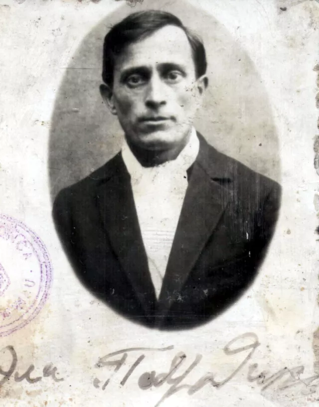 This is my father Elih Podriadchik. This photo was taken in Floreshty in 1939. This is the last photo of my father, mother pulled it off a document. It writes 'Podriadchik', and here is his signature.