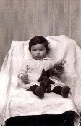 This is me. I was under one year old then. I was given a new doll and photographed with it. This photo was taken in Riga in 1927.