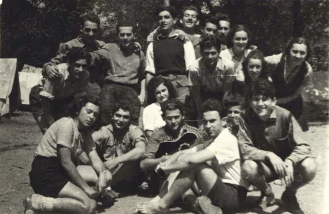 On this photo are my friends and me. We were on summer holiday at the sea side and I am the third in the middle row from the right. The photo was taken in the 1940s.
