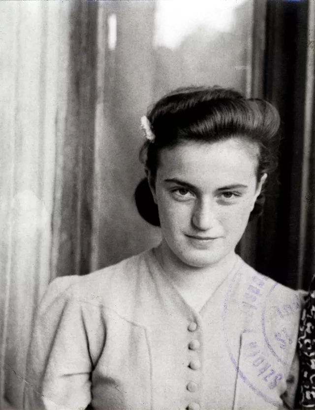 This is me in 1945. At this time I was living with the Korczaks, my parent's friends who took me home. The photo was probably taken for my school ID, because there is a stamp on it.