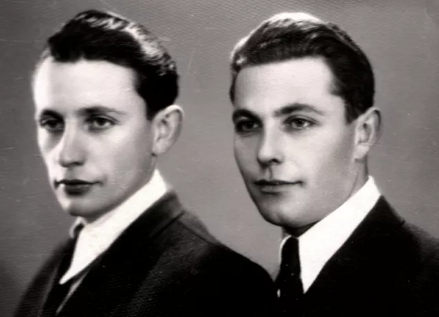 This is me, Tibor Gohman (on the right) with my older brother Miklos. We were close friends and when Miklos received his first salary, he invited me to a photo shop to be photographed for the memory. This photo was taken in Munkacs in 1943.