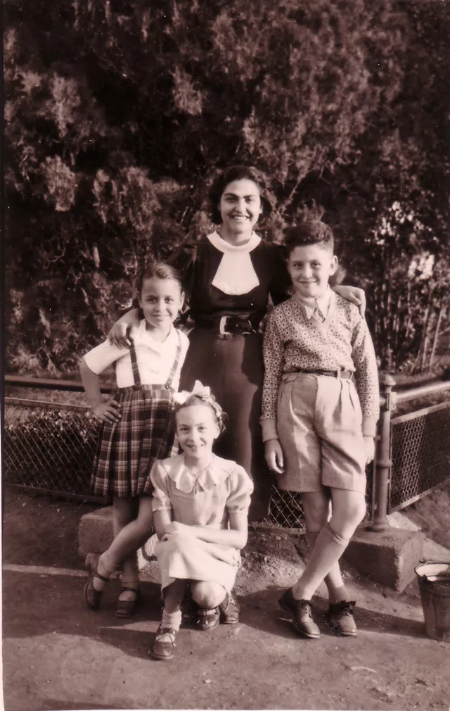 This is a picture of my sister Rosa (seated), my cousin Rosa Modiano (first from left), a teacher of theirs (center) and my cousin Tori Modiano (first from right).