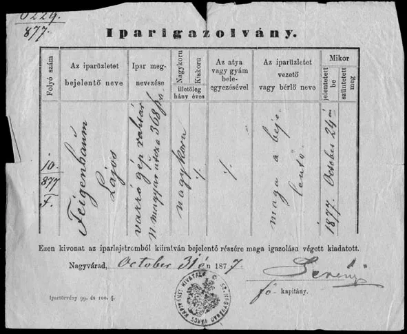 Trade license of Janos’ grandfather