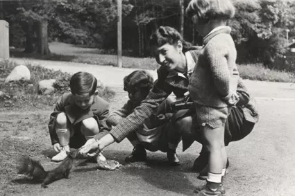 This picture was taken in Tatranska Lomnica in 1939. I, Ladislav Urban, am the first on the left, I don’t know who’s squatting down beside me, then there’s my mother Alzbeta Urban, and standing beside her is my brother Tomas Urban. We used to go on vacation with our parents regularly. Every year we'd go to the High Tatras, to Tatranska Lomnica. We'd go there both in the summer as well as during the winter. Most of the time we'd stay at the Grand Hotel. The last time we were there was in 1941, I think. I've also got photos from those times. I remember that the trains were so high that we children weren't able to get on. The trip lasted quite long, for us. In the Tatras we'd go sledding, and in the summer we'd walk around and play. Chasing squirrels and so on. Our parents would also take us to restaurants. We used to go there together with friends. Mainly our father, who used to play soccer in Piestany. He'd begun back when he was a student in Vienna. He even played defense for some team there.