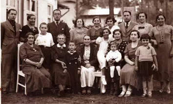 This is my family. Standing from left to right in the second row: my father's brother Izia Kats, my father's sister Frieda, aunt Dora's son Tsalel, uncle Sasha Medynch, mother's sister Zhenia Medynch, my sister Rebecca Kats, aunt Dora's daughter, Rebecca, my father Mendel-Leib Kats, my mother Sarah-Maria Kats, my father's sister Slava. From left to right in the first row: my mother's sister Dora, my grandmother Rosa Videtskaya, my cousin Semyon Medynch, my grandmother Shprintse Kats, I, Tsylia Liatun, my father's sister Mina and her son Khenakh and my father's sister Ella Lat and her daughter Rebecca. The photo was taken in the yard of our summer-cottage in Yurmala near Riga in 1935, when we got together for some family holiday.
