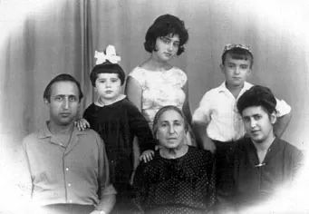 From right to left: I, my mother Suzrah Potievskaya, nee Feldman, and my brother Leonid Potievskiy. From right to left, standing: my son Igor Shapiro, my daughter Raissa Motylyova, and my brother's daughter Maya. We had this photograph taken in Korosten on the occasion of my brother visiting us from Malin in 1962.