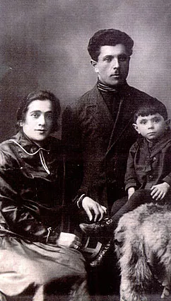 My uncle Ziama Kaplan with his wife Lisa and their son Boris. This photo was taken in a photo shop in Chernigov in 1931. He gave this photo to my parents for the memory.