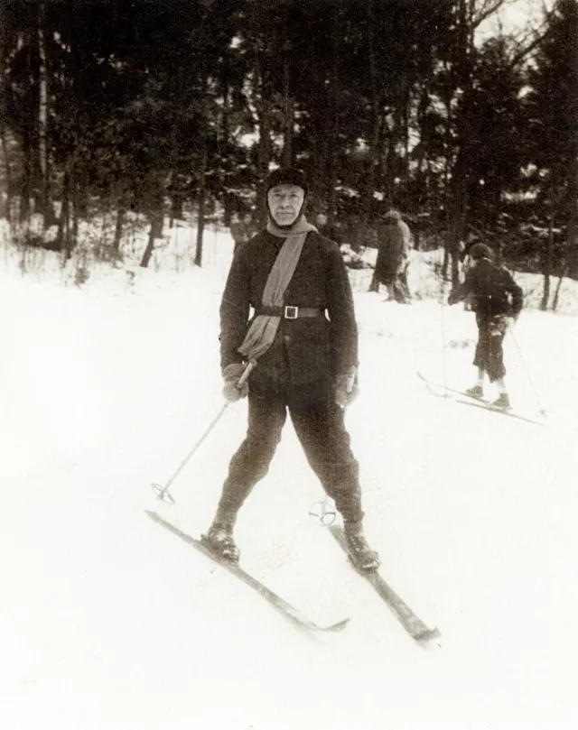 This is a picture of my uncle, father's brother - dr. Bernard Minc, skiing in a forest near Cracow. This was probably taken about 1936.