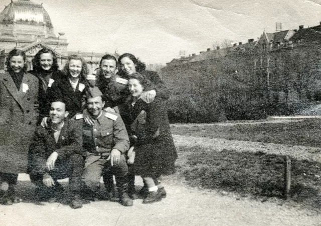 The picture was taken in 1946 in Zagreb. I am the first on the right, half crouching. This trip was a gift which I received from my firm, Planum, a military construction company, where I began working immediately after graduation from the gymnasium in 1946. I worked at this company as a clerk and was considered a hardworking employee. In appreciation for my hard work, they sent me on a paid vacation. Exhaustion from the war, poverty, and my stay with the partisans all made this vacation more pleasurable.