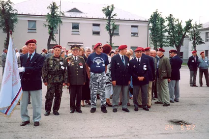 This is a photo of me (Jan Hanak) as the standard-bearer of veteran paratroopers in Zilina in 2002.