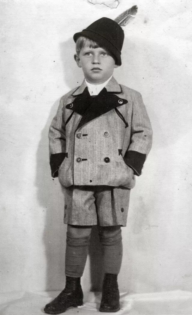 This is a photo of my cousin, Vili Sternschein, the son of uncle Max Sternschein and Aunt Suzi. You can see that he is all dressed up in a Tyrolean costume; these Tyrolean costumes were very fashionable back then, in the 1930s.