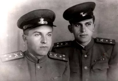 The picture was made in Hungary in 1945 after war. This is me with my friend Vasiliy Ivanov. He was a battery commander. Both of us were in one regiment in the rank of a lieutenant.